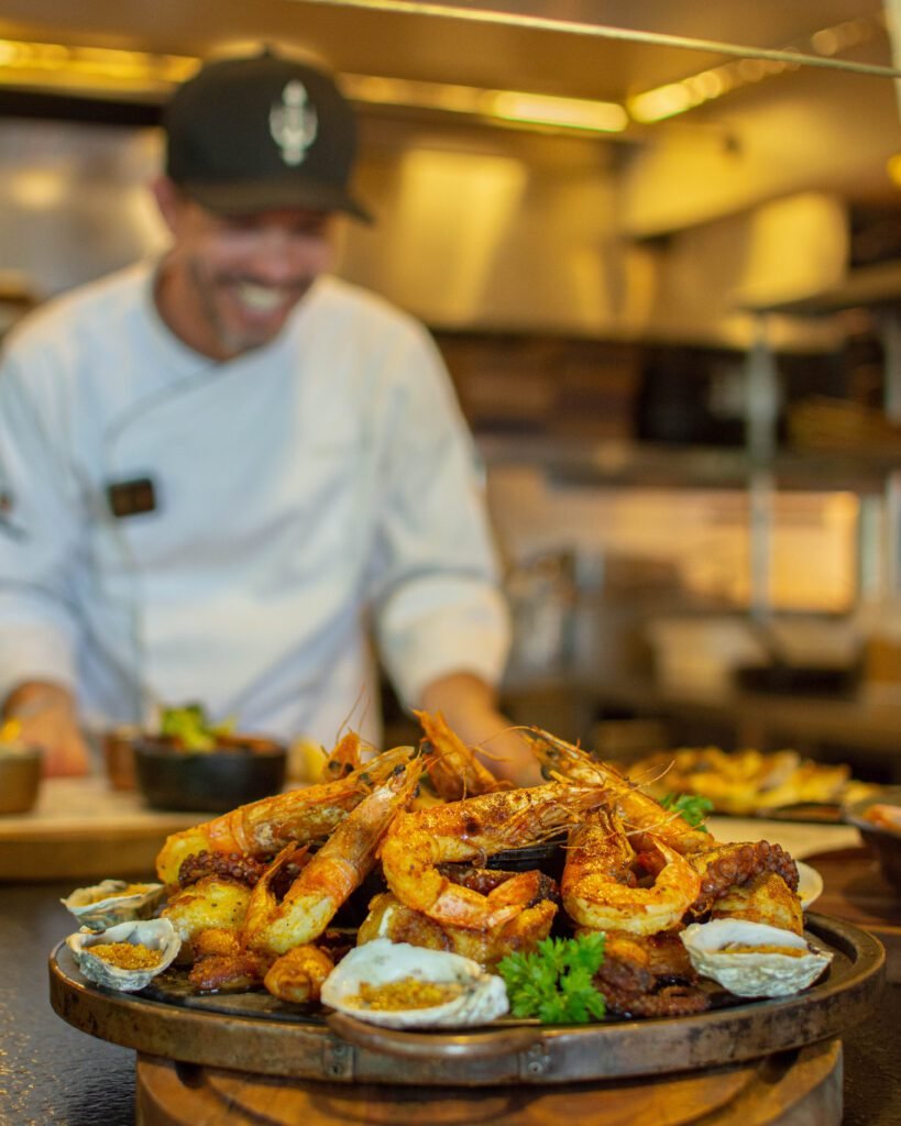 Minha especialidade é na cozinha contemporânea descomplicada, em que meu grande objetivo é ser vanguardista buscando sempre levar a melhor experiência do mar a brasa.